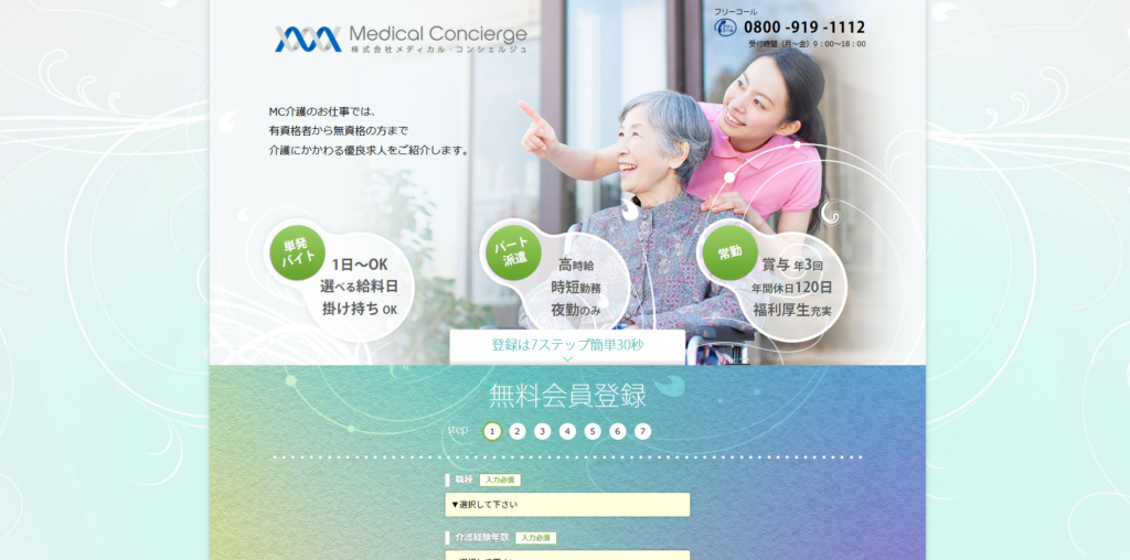 MC介護のお仕事は、介護業界に精通した専任コンサルタントによるサポートが受けられる転職エージェントです。運営会社は医師が設立した株式会社メディカル・コンシェルジュで、15年以上医療・介護に特化したサービスを提供してきた実績があります。