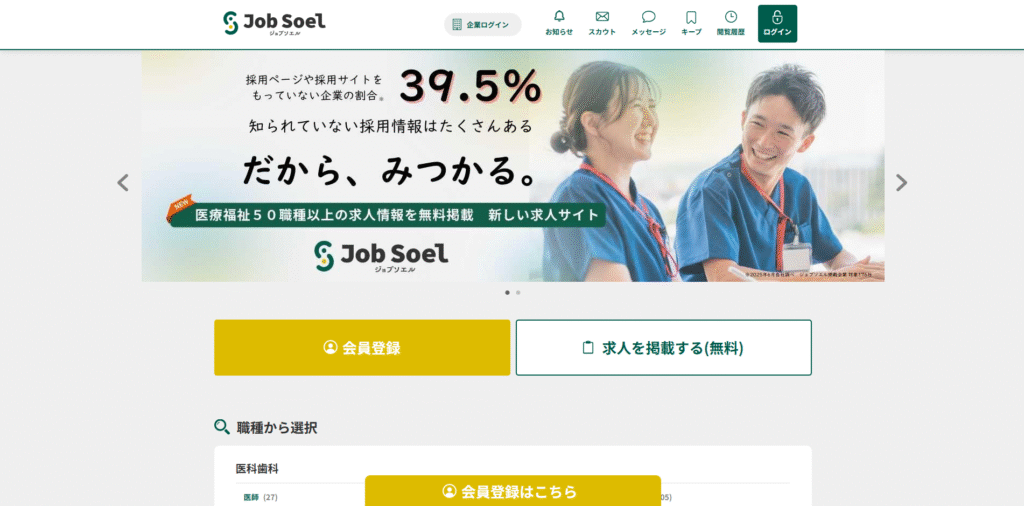 ジョブソエルは、医療・介護・福祉分野に特化し、大阪では約6,000件の求人を掲載。注目すべきは、施設担当者から直接スカウトが届き、チャットでやりとりできる機能。やり取りはLINE連携も可能で、スピーディかつ手軽に転職活動が進められます。